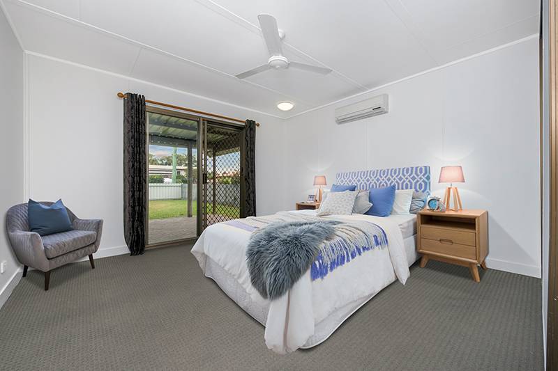 • Master bedroom with private access to the patio, built in wardrobes, airconditioning & ceiling fan