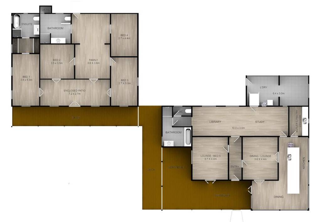 When a classic Queenslander of this calibre comes to the market, not only will you be blown away by the sheer beauty and detailed renovation of the first home, but the amazing renovation was carried across to the second home, both structures united with a full length deck creating a spectacular sprawling property.
