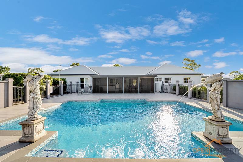 Acreage living at its absolute best, set on 6,479sqm of land, you will not be under one another’s feet in this stunning spacious home. The home offers 4 very large, air-conditioned bedrooms, open plan living and a theatre room that is 7m by 5m which is grand enough for the largest of theatre lounge chairs or even a snooker table! If you aren’t indoors enjoying the open planning living dining room, you could be outdoors enjoying the enclosed outdoor entertaining area overlooking the stunning in ground swimming pool. The property is fully fenced and the bore feds part of the irrigation for the manicured gardens. At the side of the property, you find a great sized fully powered shed large enough for cars, boats or even the caravan.