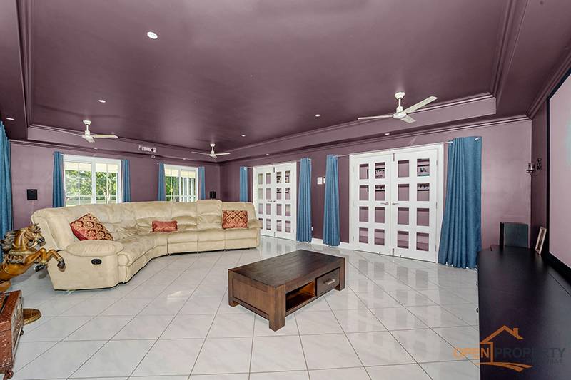 • Massive theatre room grand enough to house a full-size snooker table with 135 inch built in screen, ceiling fans and air conditioning