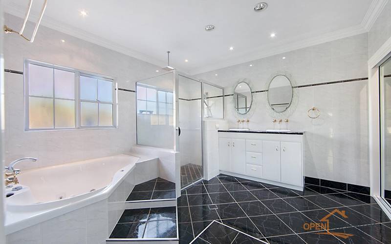 • King Size Master Bedroom with stunning ensuite that offers corner corner spa bath, separate shower, double vanity sinks plus separate toilet, walk in robe, split system air conditioning and ceiling fans