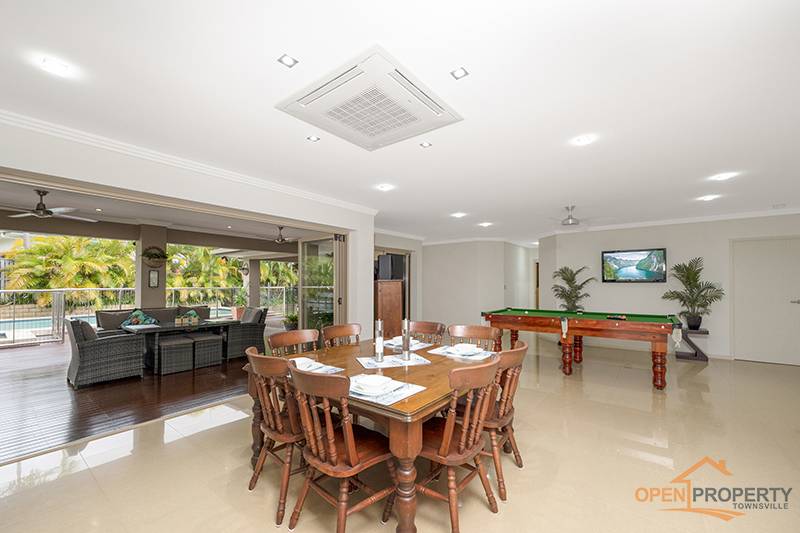 • Huge open plan tiled living which is large enough for the biggest of dining tables and still room for a pool table complimented by stacker doors, central cooling and ceiling fans