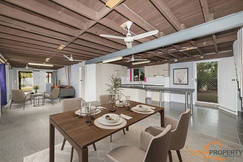 • Open plan living and dining with split system air conditioner and ceiling fans
