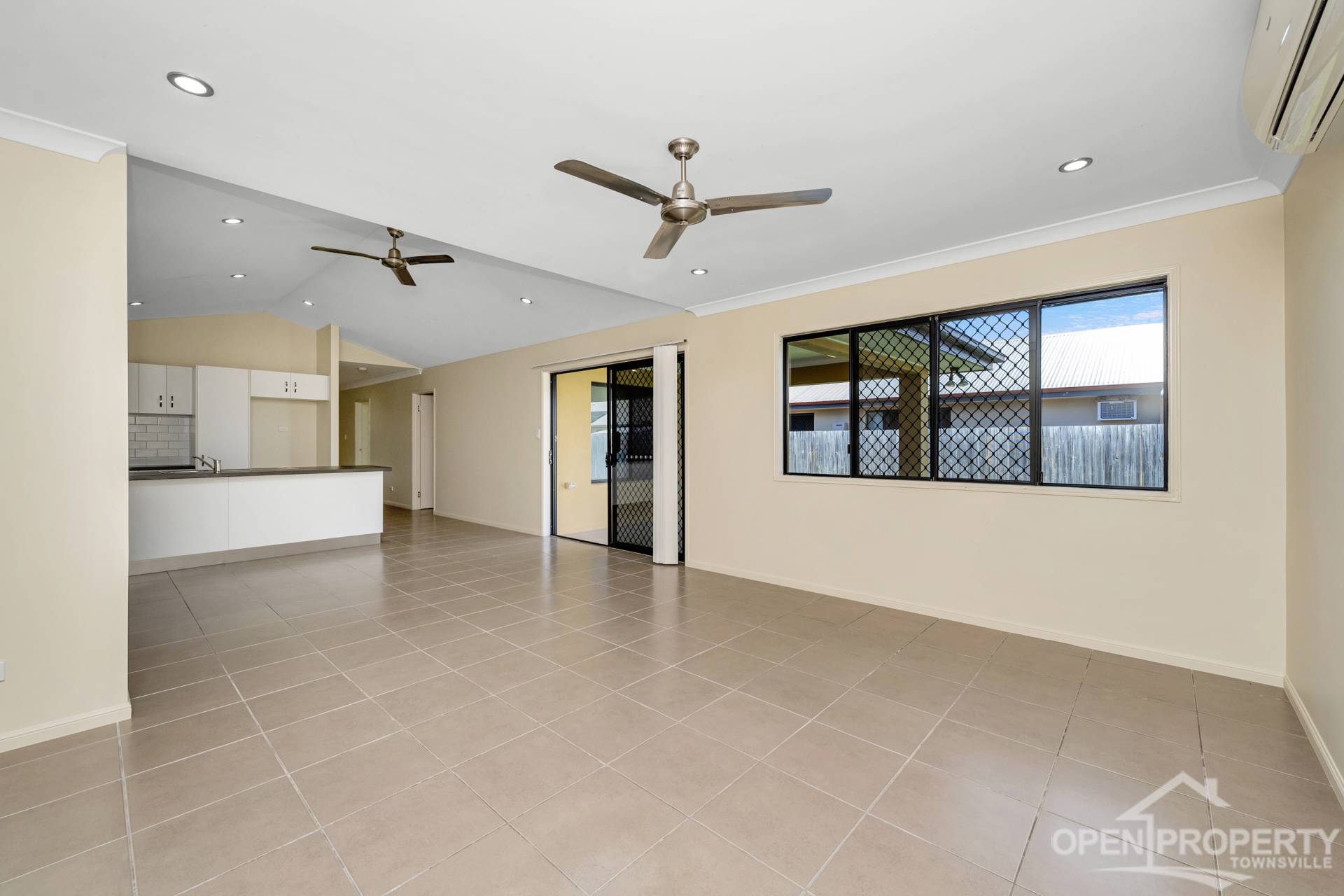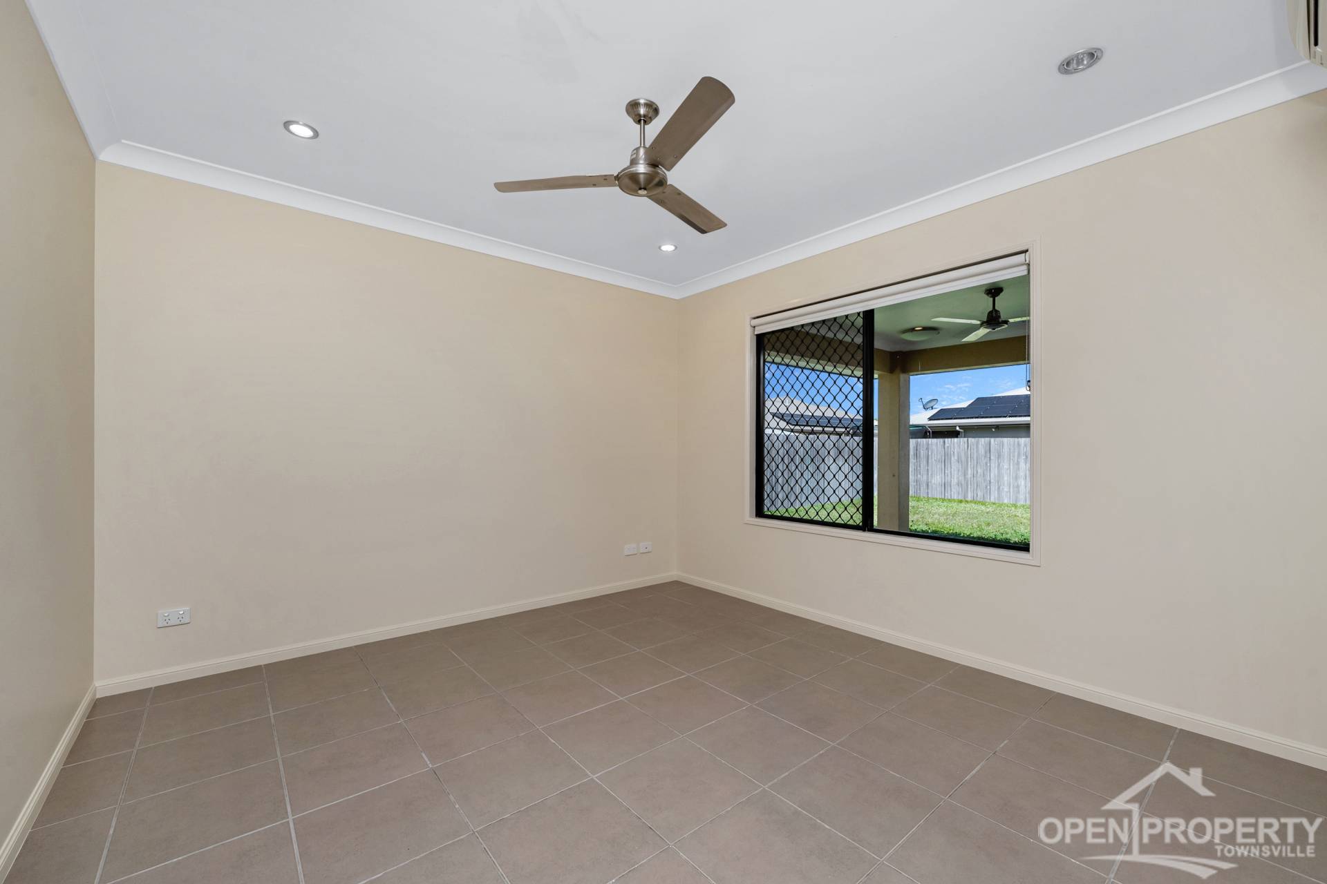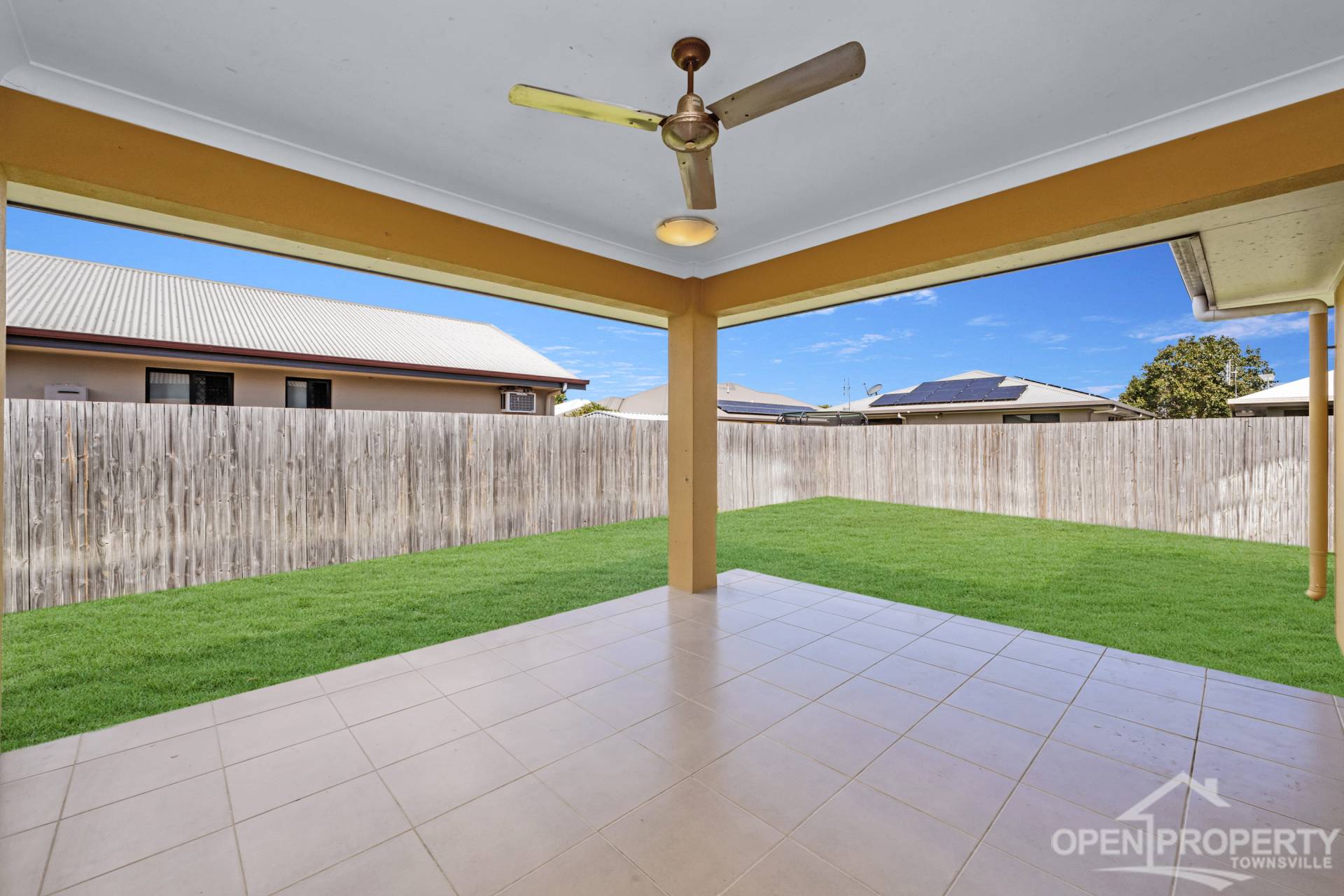 • Large outdoor tiled entertaining area with ceiling fan