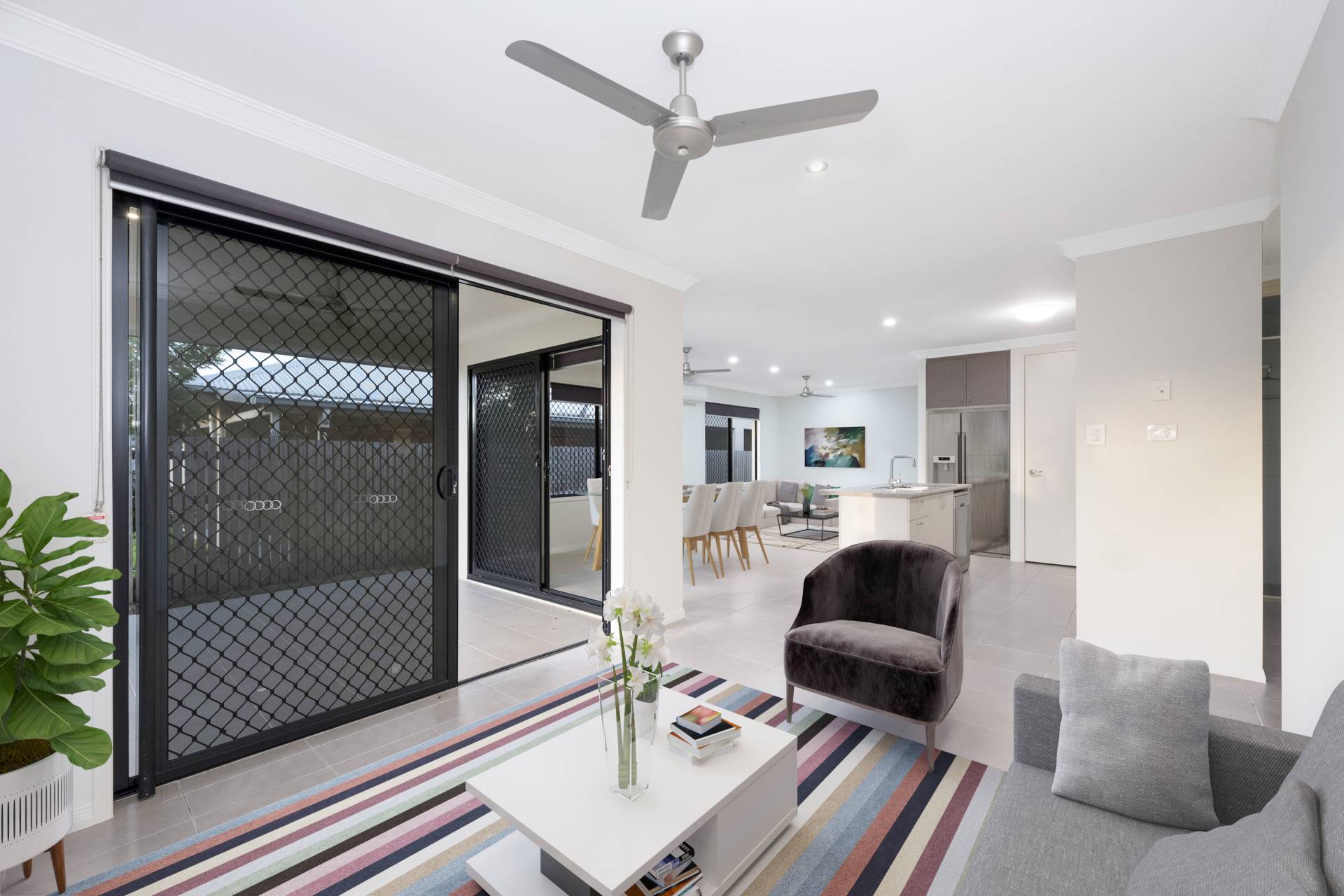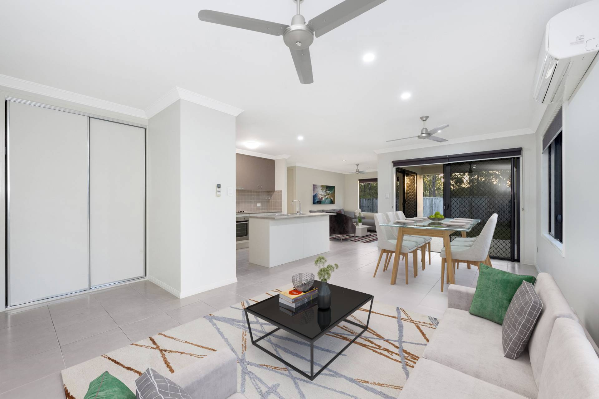 • Large multiple tiled living spaces