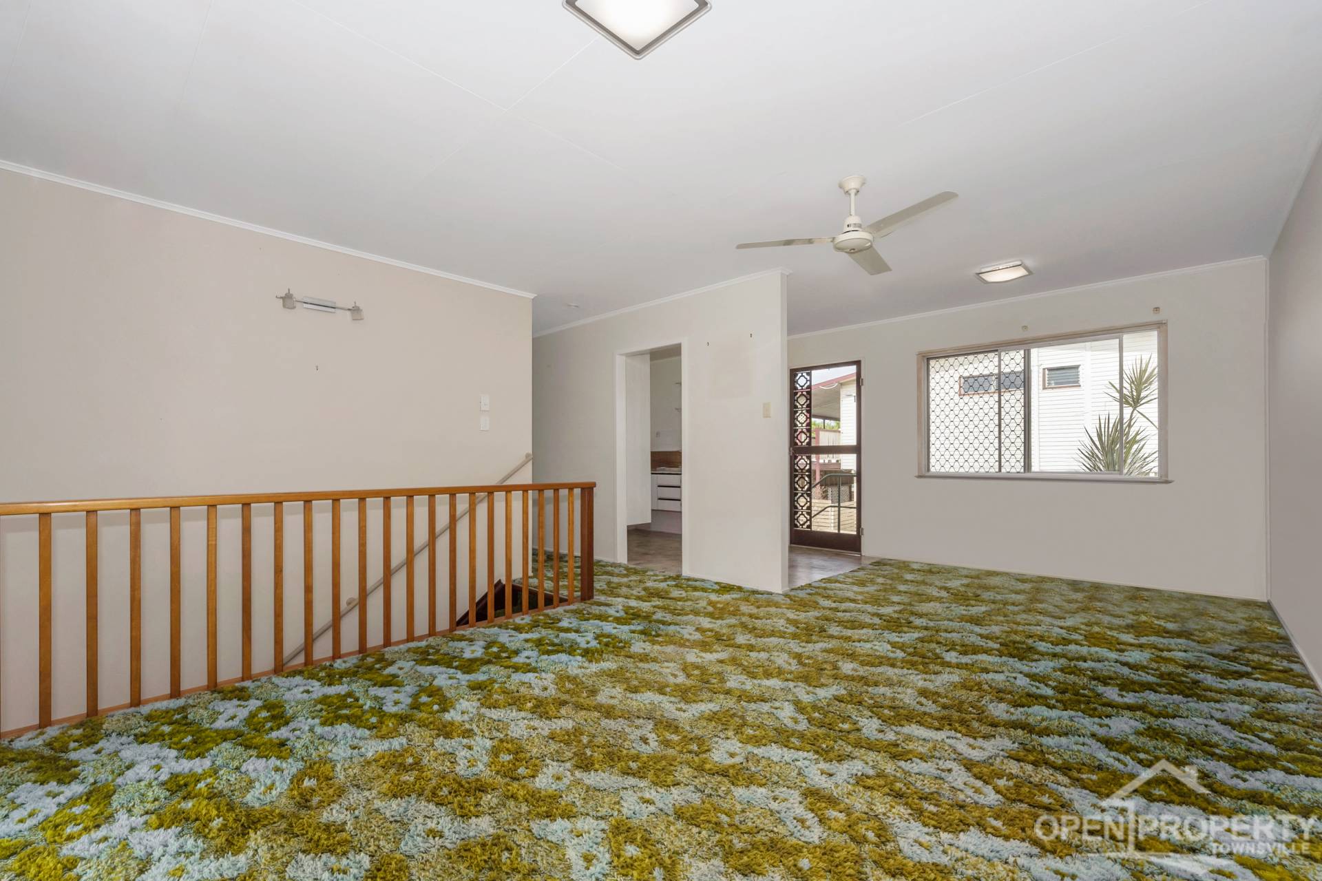 • Living/Dining area with original carpet and ceiling fans plus direct access to front balcony