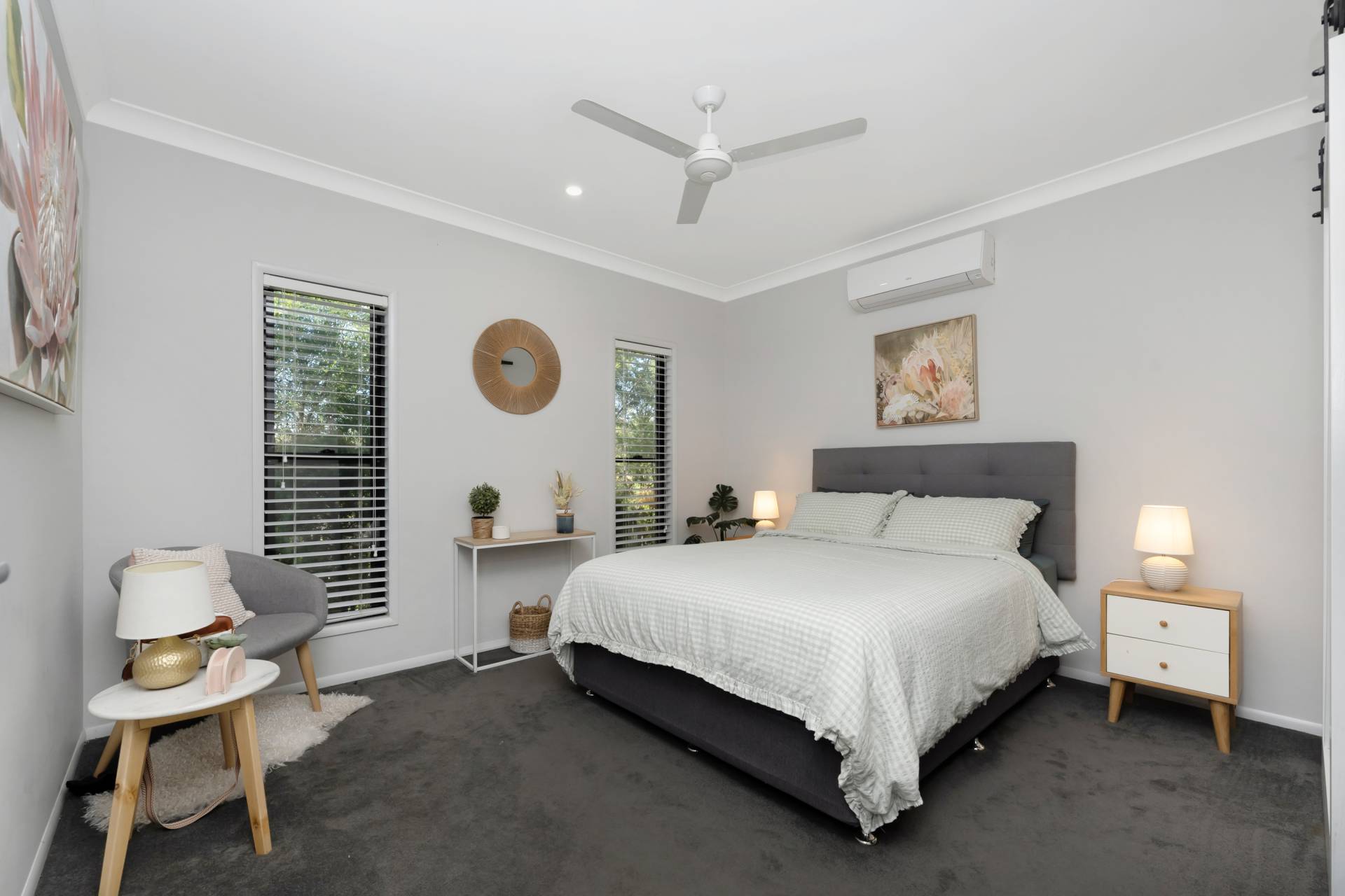 • Stylish master bedroom features split-system air conditioning. Soothing neutral palette, enhanced by natural light, offering walk in robe