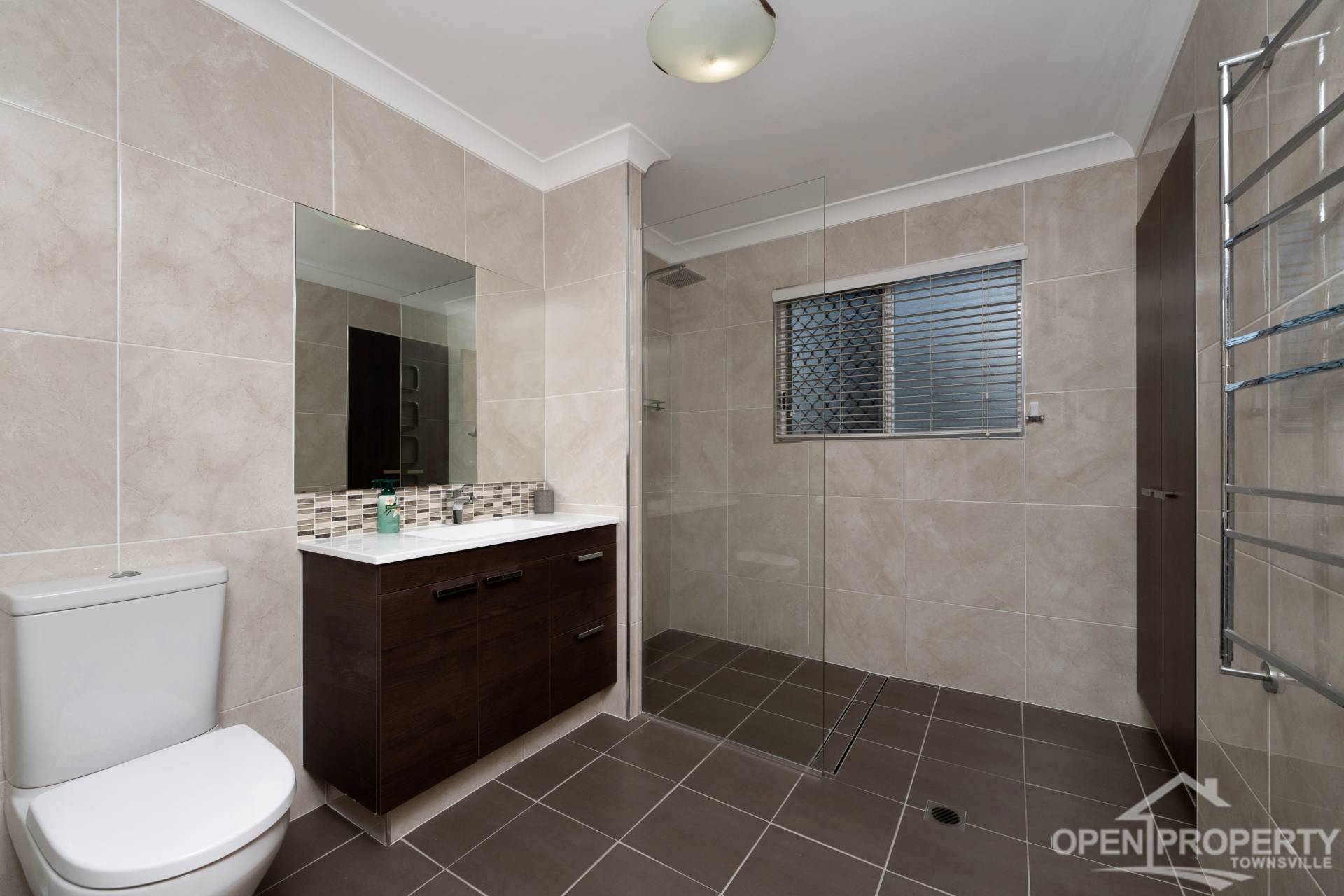 • Two stylishly appointed bathrooms—one upstairs and one downstairs—each feature floor-to-ceiling tiles, modern vanities, and spacious walk-in showers 4 large air-conditioned bedrooms