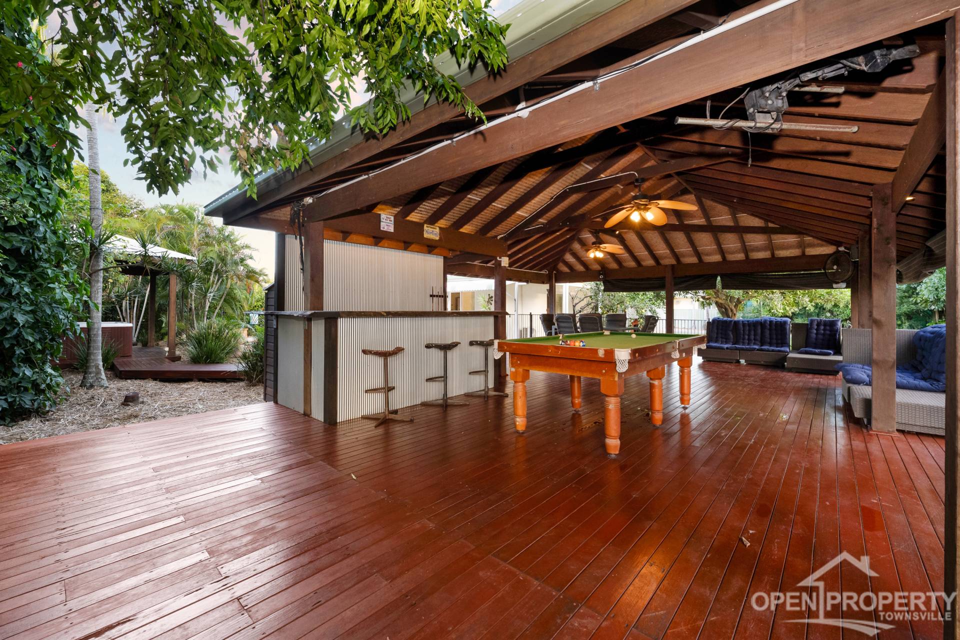 • Grand pavilion complete with ceiling fans and ample room for dining, and entertaining, includes slate pool table