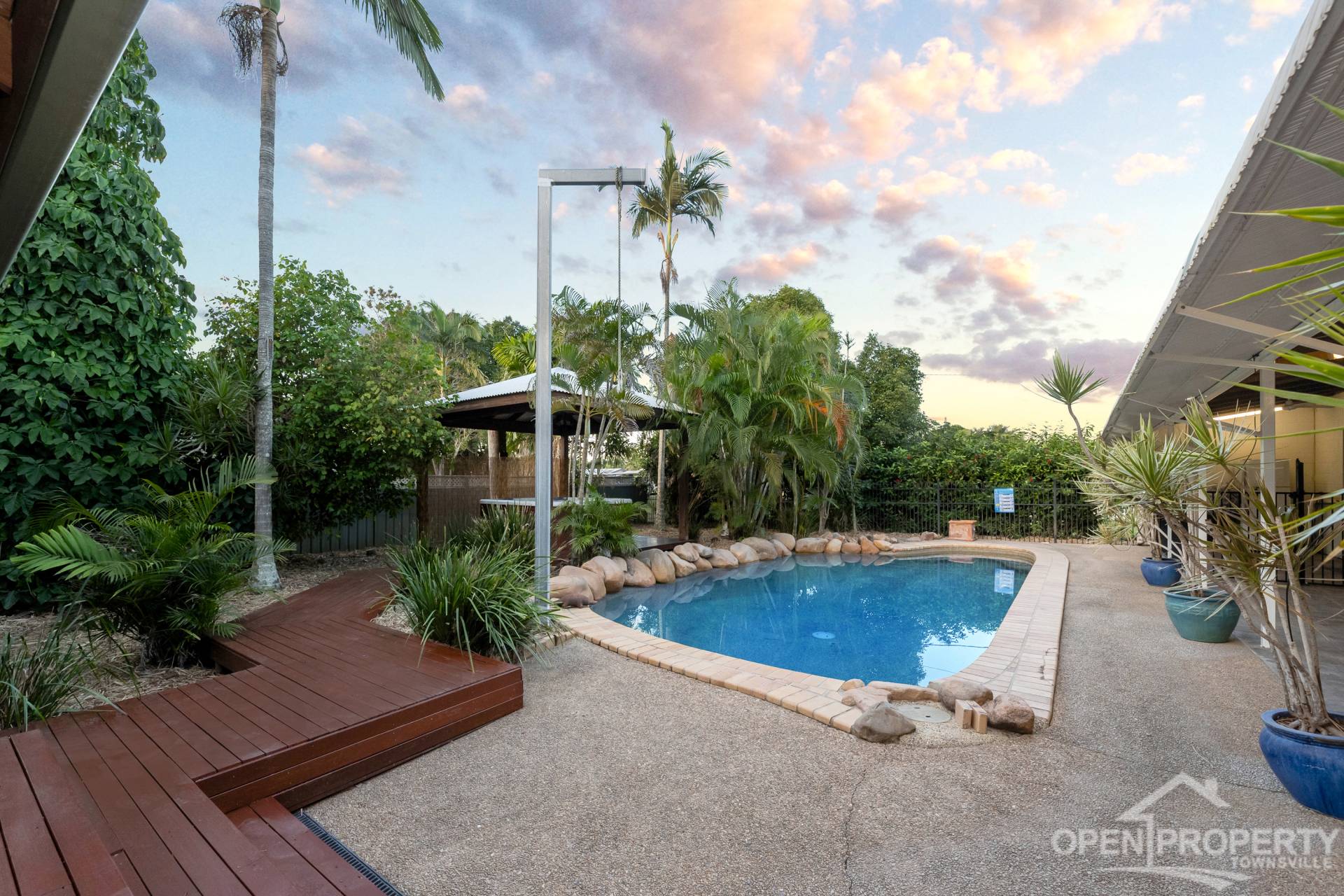 • Sparkling in-ground swimming pool surrounded by tropical gardens