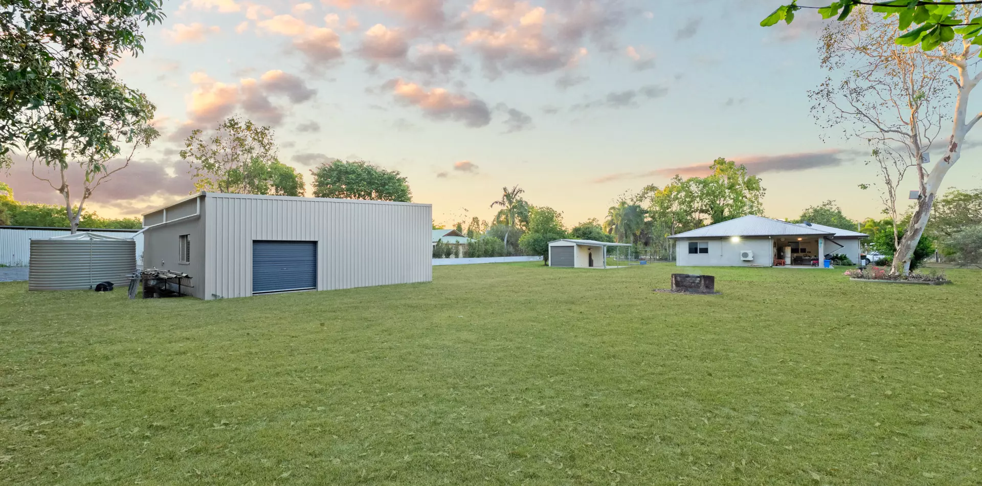 • Impressive shed measuring 12.5 metres wide, 10.5 metres deep, with a 4.2 metre roof height at the front — complete with power and water